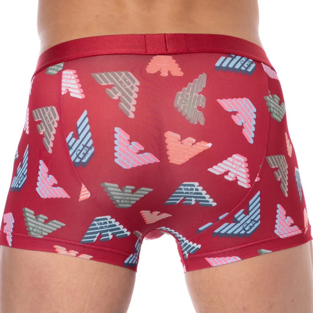 Boxer doux et confortable en microfibre extensible. Matière recyclée séchant rapidement, réalisée dans le cadre du projet de durabilité d’Armani. Imprimé allover constitué d’aigles iconiques de la marque en 3D. Poche frontale doublée. Ceinture élastique signée Emporio Armani.