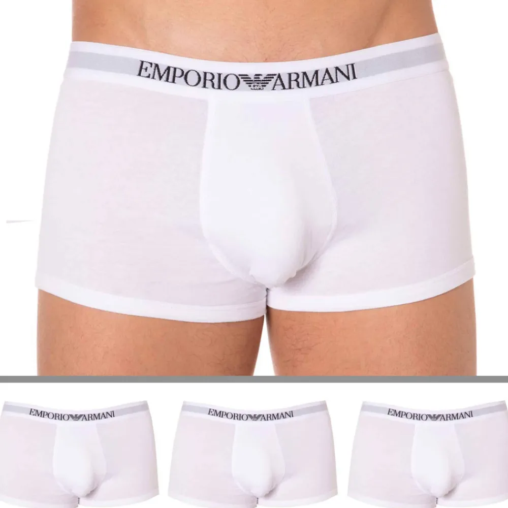 Lot de 3 boxers en coton doux et confortable. Coupe simple et élégante. Ceinture élastique signée Emporio Armani.