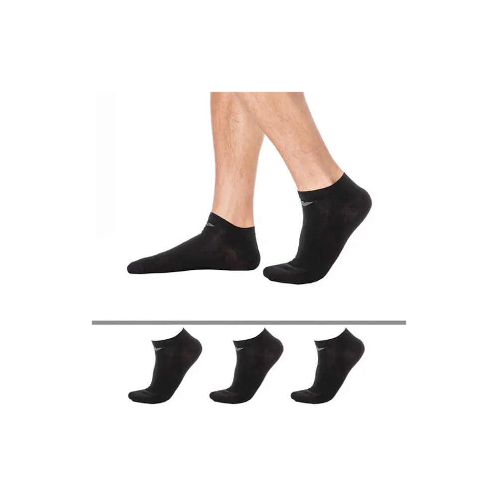 Lot de 3 paires de socquettes en mélange de coton et de microfibre. Aigle Emporio Armani de couleur contrastée sur le pied. Taille S/M : 39-43, taille L/XL : 44-48.