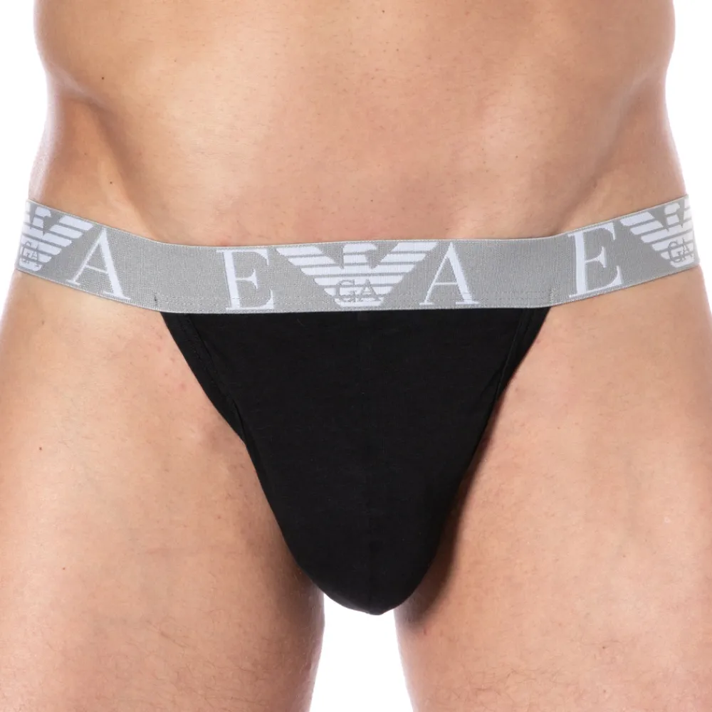 Jockstrap en coton extensible, très doux et confortable. Coupe taille basse, simple et élégante. Poche frontale doublée. Ceinture élastique contrastée signée du monogramme iconique de la marque.