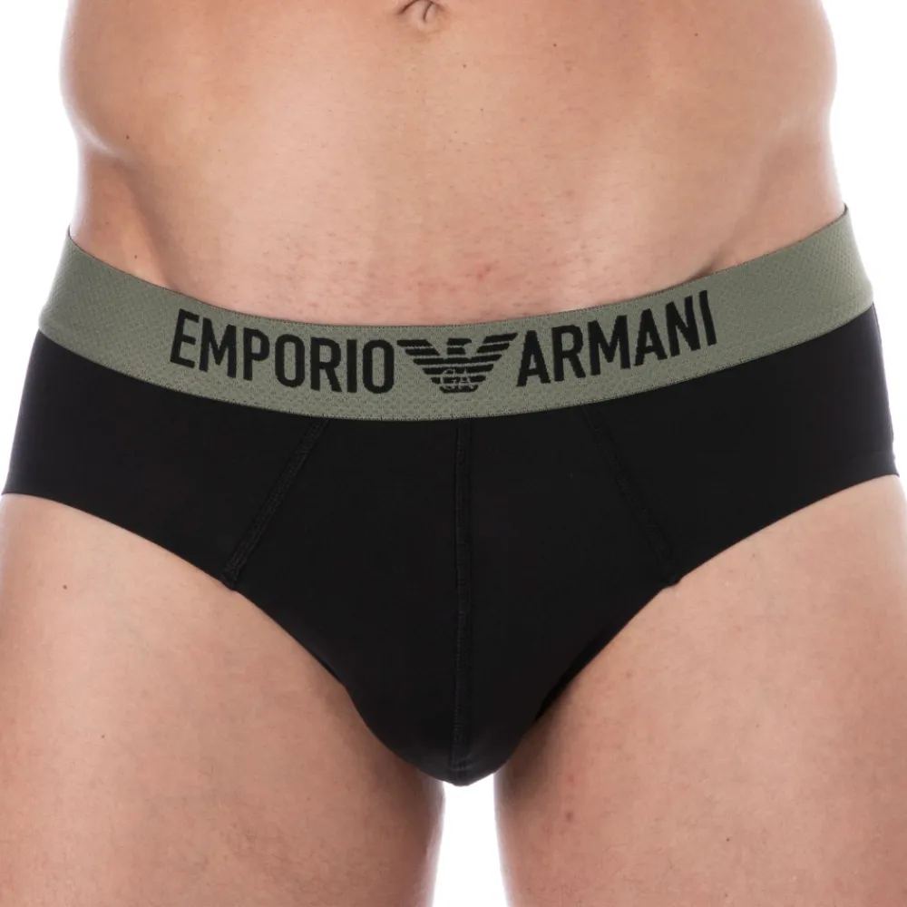 Slip en microfibre extensible, très douce et confortable. Coupe taille basse, simple et élégante. Poche frontale doublée. Ceinture élastique contrastée signée Emporio Armani.