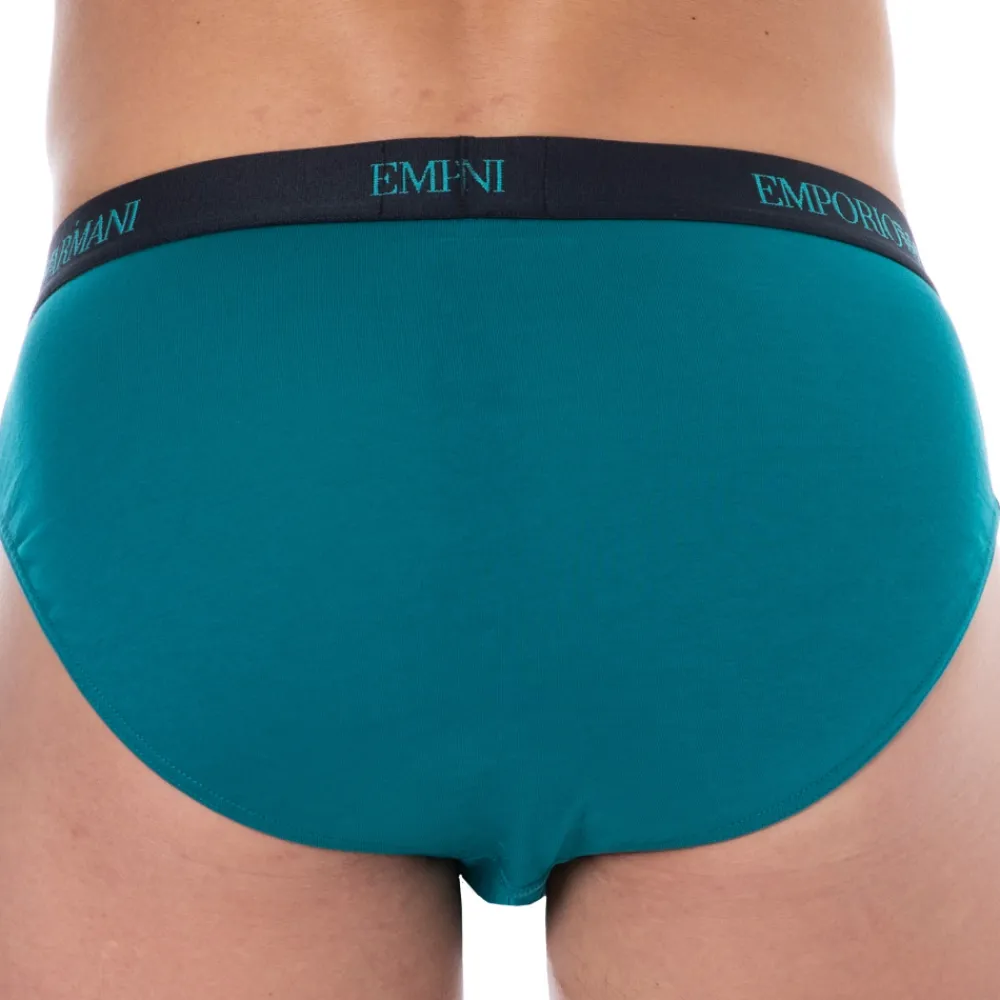Slip en jersey de pur coton, très doux et confortable. Coupe taille basse, simple et élégante. Poche frontale doublée. Ceinture élastique signée Emporio Armani.
