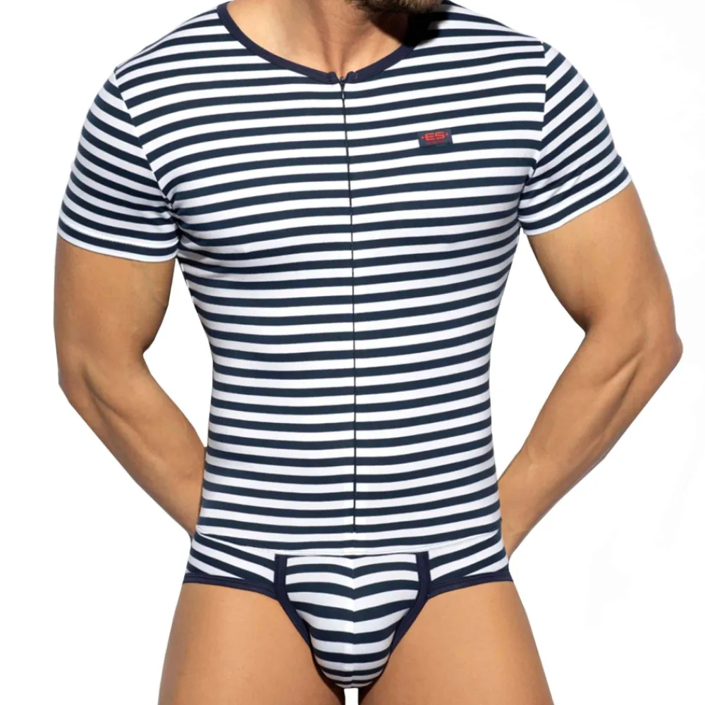 ES Collection Bodys De Nuit|Bodys-Body Coton Rayure Marine