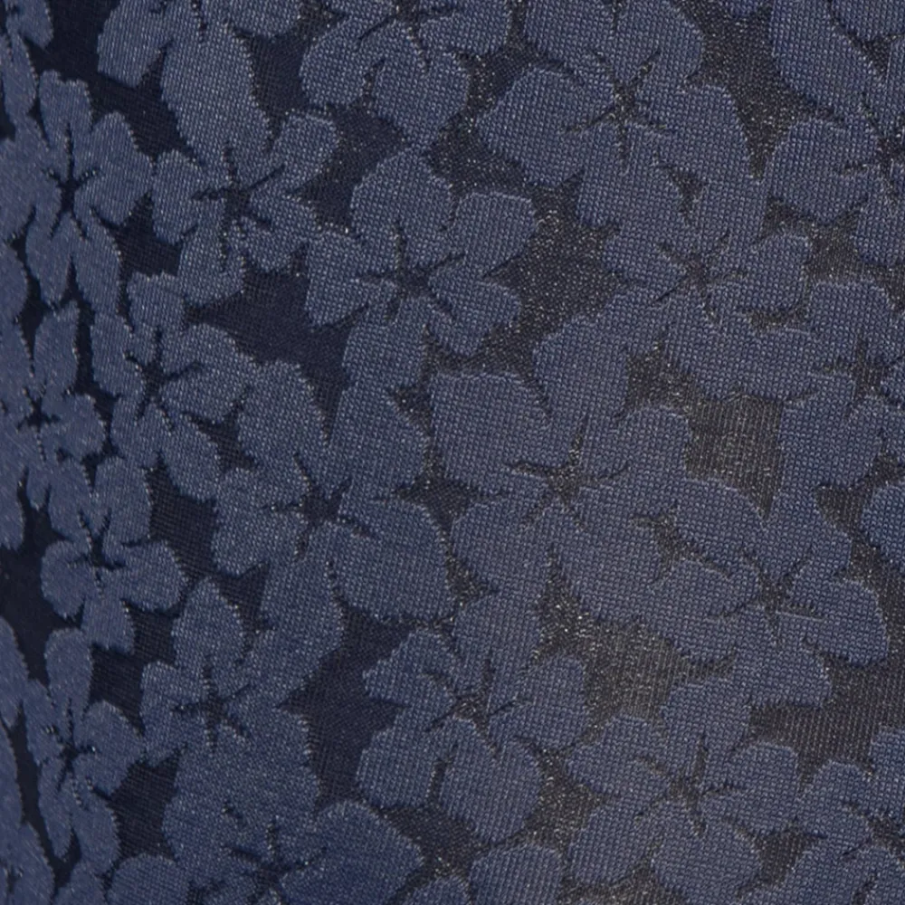 Boxer en voile extensible légèrement transparent. Motif floral discret et élégant façon dentelle. Coupe taille basse et ajustée. Ceinture élastique signée ES Collection.
