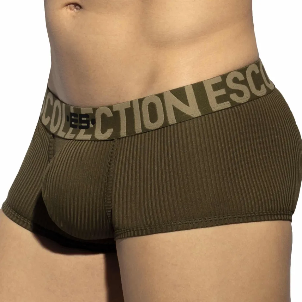 Boxer taille basse en microfibre côtelée. Tissu recyclé doux et extensible. Grande poche frontale pour un confort optimal. Ceinture élastique en jacquard signée ES Collection.