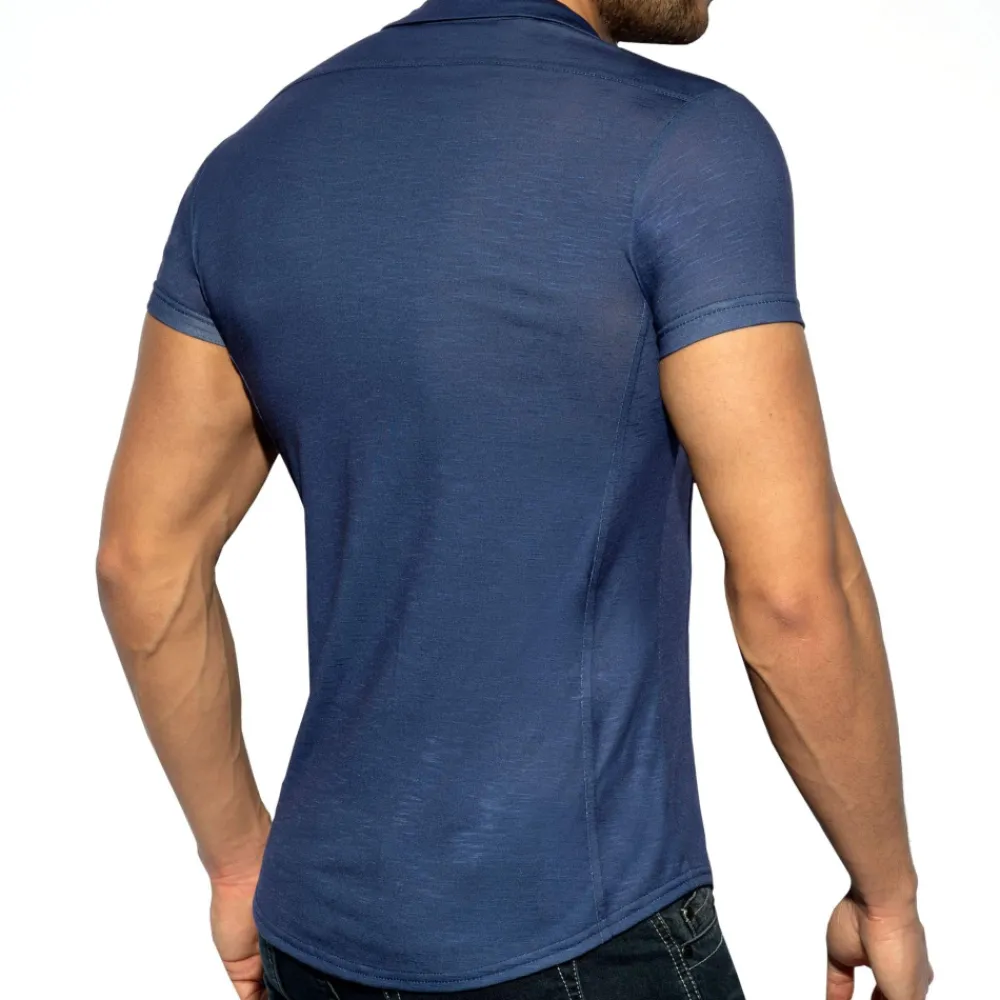 Chemisette en microfibre fine, légère et respirante de couleur unie. Coupe cintrée très ajustée. Fermeture 5 boutons. Epingle métallique sur la manche gauche. Logo ES Collection sur la poitrine.