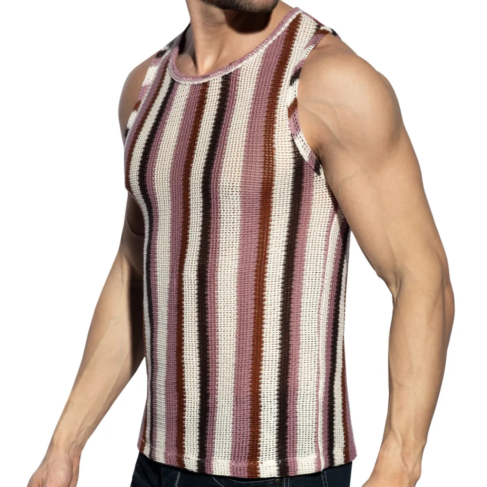 Débardeur bohème en coton tricoté à larges mailles, qui ne laisse pas grand chose à l’imagination. Coupe ajustée et col rond. Etiquette ES Collection en silicone au dos.