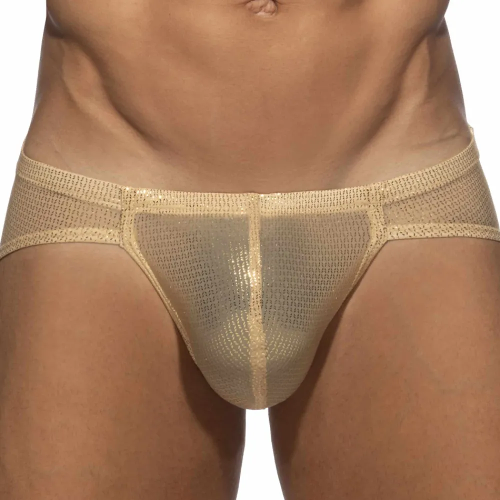 Slip sexy et audacieux en microfibre douce, fine et légère, ornée d’un motif métallisé scintillant. Coupe taille basse, minimaliste et parfaitement ajustée. Ceinture élastique recouverte. Grande poche frontale non doublée. Logo ES Collection en silicone à l’arrière.