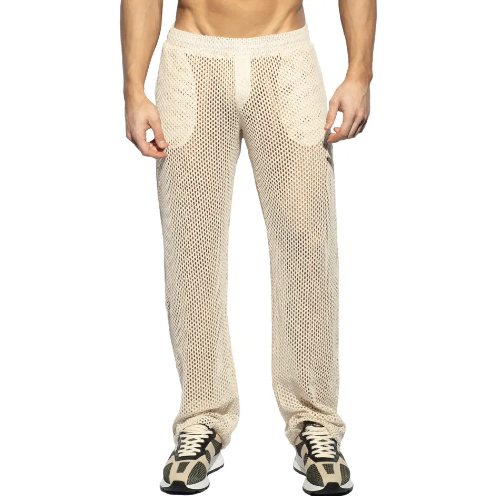 Pantalon ample et fluide en crochet épais et transparent. Tissu tricoté, confortable et luxueux, en pur coton. 2 poches. Ceinture élastique recouverte avec cordon de serrage intérieur. Logo ES Collection en silicone à l’arrière.