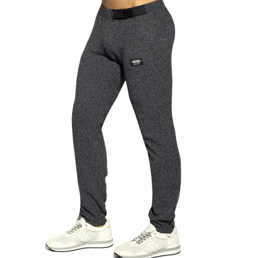 Pantalon sport très élégant et original en tissu rustique épais. 2 poches. Ceinture élastiques avec strap et boucle fonctionnelle. Anneau métallique à l’arrière. Logo ES Collection en silicone sur la jambe gauche.