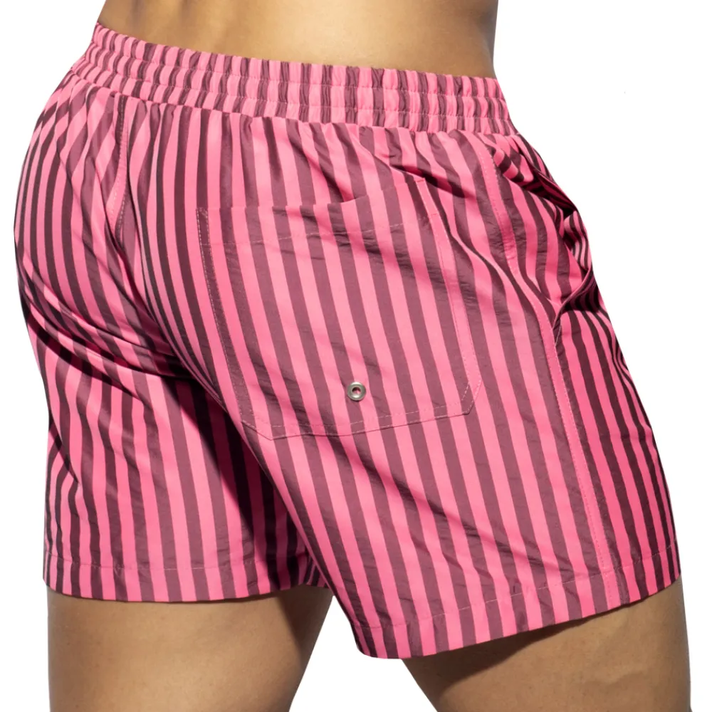 ES Collection Shorts De Bain-Short de Bain Long Rayé Rose Fluo