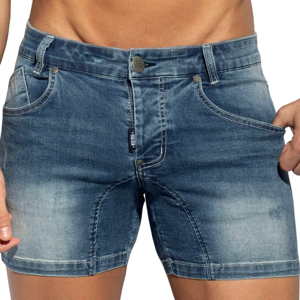 Short en jeans stretch très résistant et confortable. Coupe taille basse, sexy et ajustée. 3 poches à l’avant et 2 poches à l’arrière. Effet usé et délavé. Rivets métalliques ES Collection. Braguette à boutons. Passants de ceinture. Logo ES brodé sur les poches arrières. Taille US.