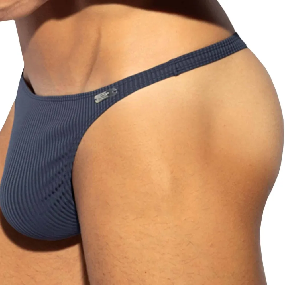 String taille basse très sexy en microfibre extensible côtelée et recyclée. Coupe minimaliste très ajustée. Poche frontale moulée sans couture pour un confort optimal. Logo ES Collection en silicone sur la fine ceinture élastique.