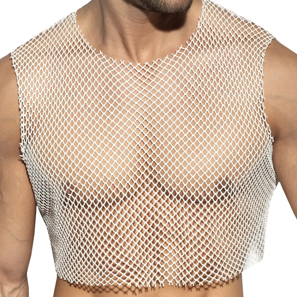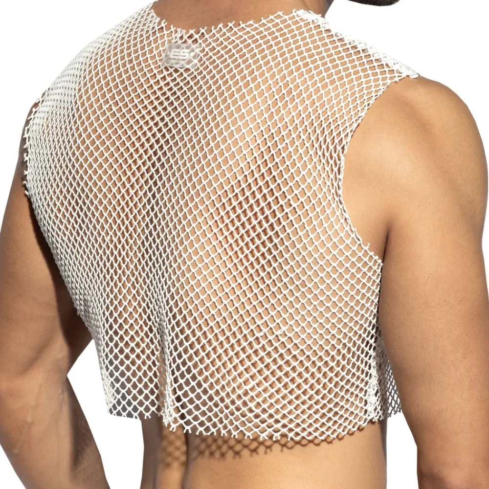 Débardeur très sexy en résille extensible et robuste à maillage large, façon filet de pêche. Finitions brutes. Coupe ajustée et raccourcie pour dévoiler vos abdos. Logo ES Collection en silicone dans le dos.