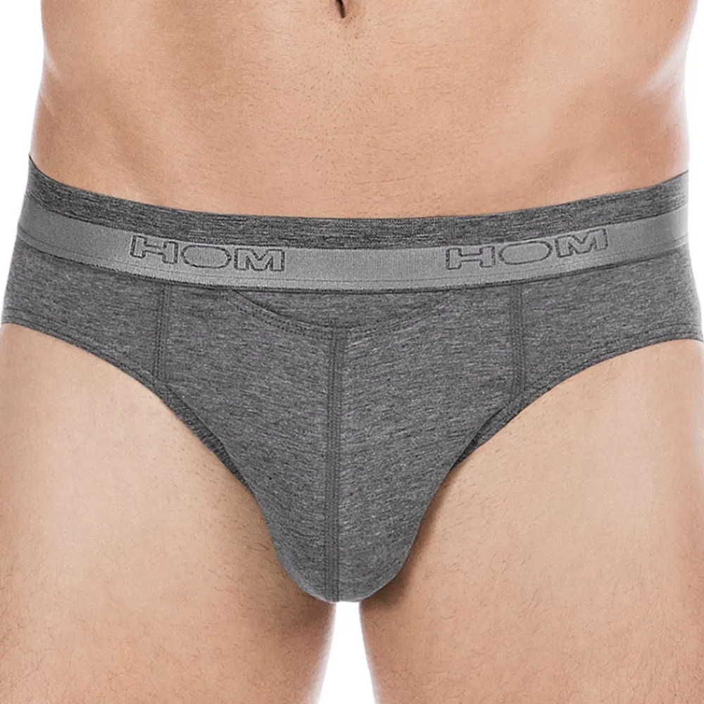 Slip en mélange doux et soyeux de coton et de modal. Coupe classique assurant confort et maintien. Ouverture horizontale HO1 brevetée par HOM, aussi pratique pour les droitiers que les gauchers. Ceinture élastique signée HOM.