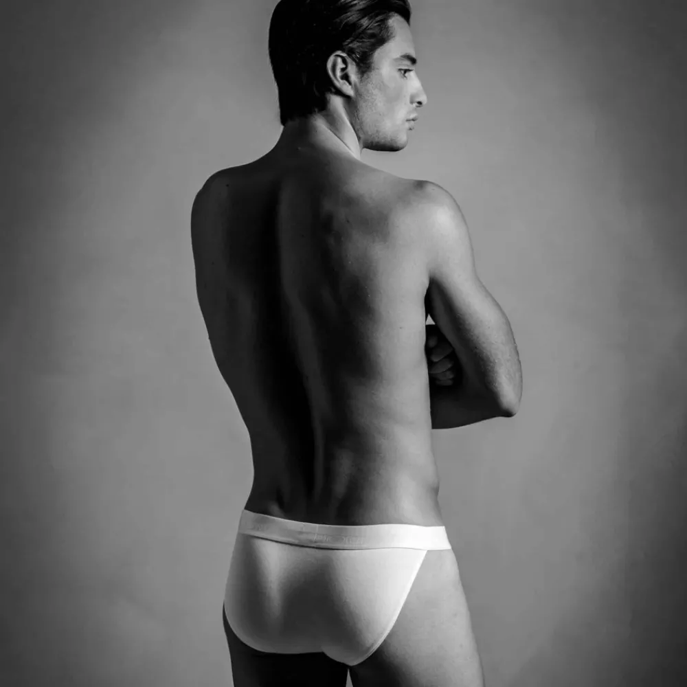 Slip tanga en mélange doux et confortable de coton et modal. Coupe classique assurant confort et maintien. Fine ceinture élastique signée HOM.