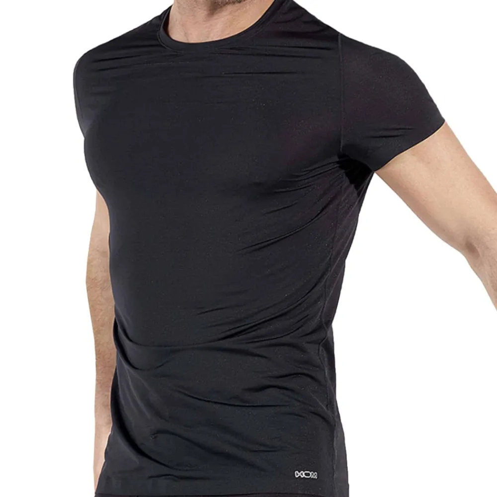 T-shirt confortable en microfibre extensible, fluide et soyeuse. Tissu respirant doté de la technologie antibactérienne H-Fresh qui réduit les odeurs pour une sensation de fraîcheur tout au long de la journée. Col rond et manches courtes.