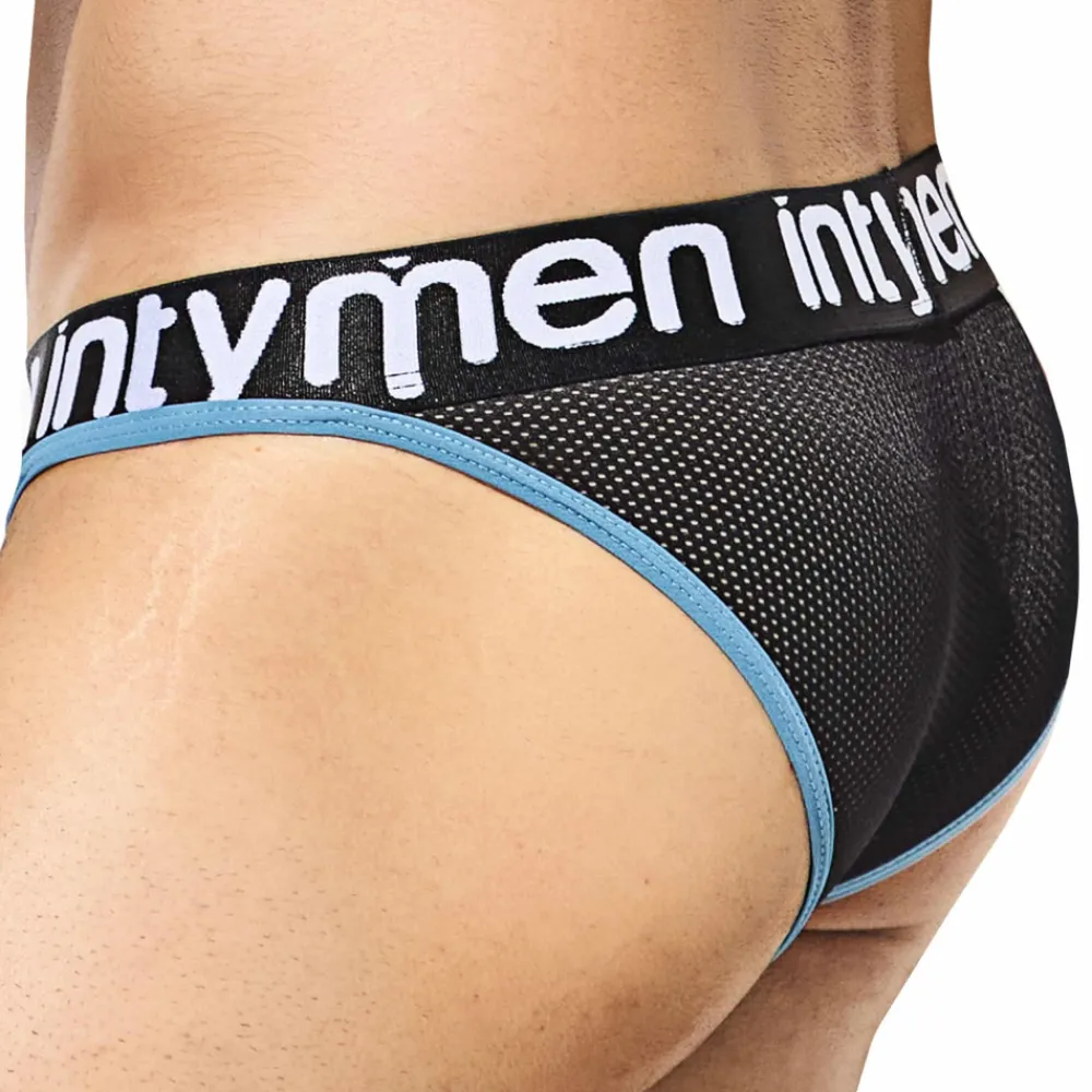 Slip tanga en résille extensible ultra légère, respirante et confortable. Poche frontale préformée, non doublée pour une grande transparence. Bordures de couleur contrastée. Ceinture élastique signée Intymen. Processus de fabrication respectueux de l’environnement.