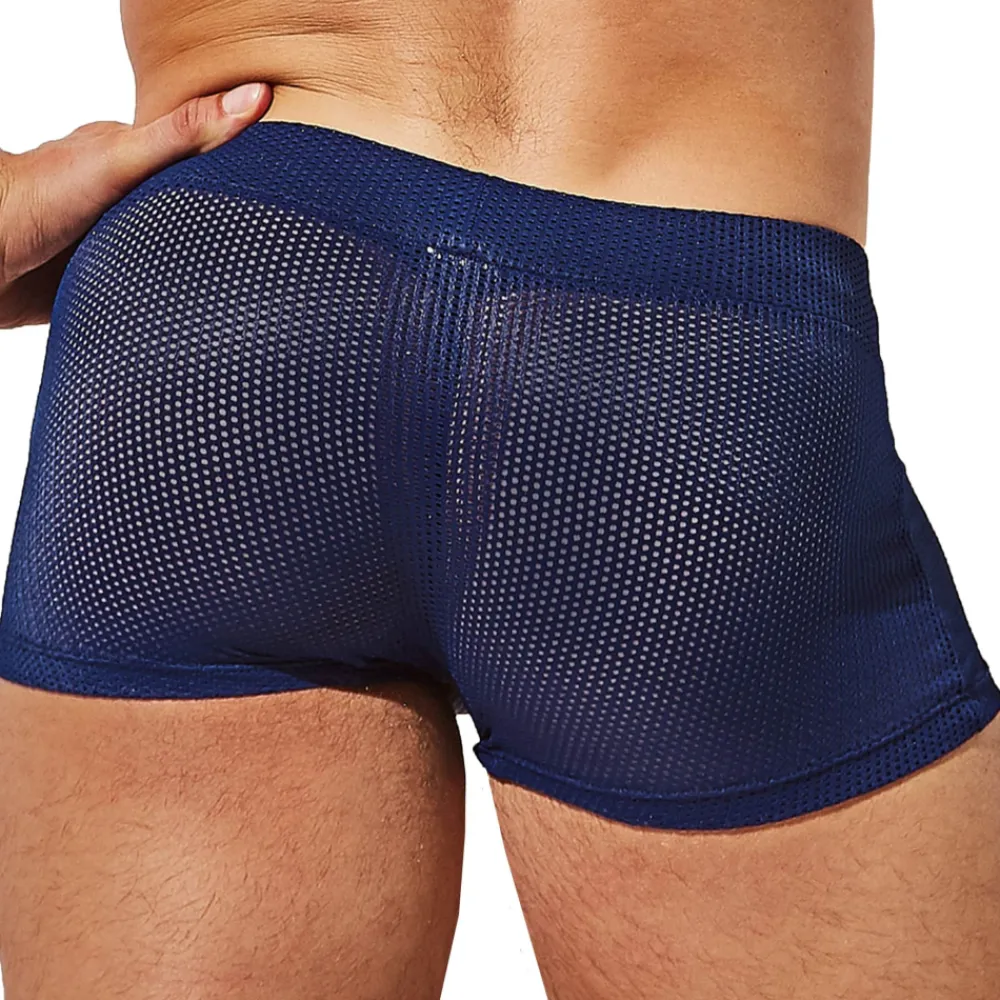 Boxer sport en résille super extensible, douce et respirante. Processus de fabrication respectueux de l’environnement et certifié Oeko-Tex. Poche frontale préformée non doublée. Ceinture élastique recouverte.