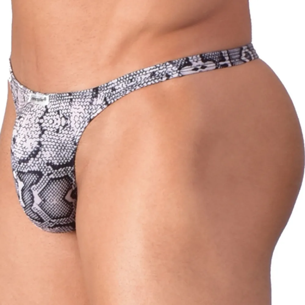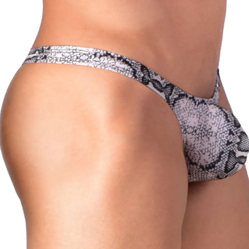 String ultra taille basse, minimaliste et provocant. Imprimé reptile. Poche Bulge brevetée qui soulève et projette votre masculinité vers l’avant. En mélange de nylon et de lycra, ce sous-vêtement peut aussi faire office de maillot de bain pour les plus audacieux. Logo Joe Snyder. Fine ceinture élastique recouverte.