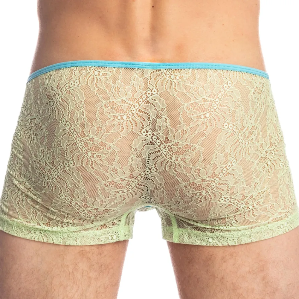 Boxer sexy et luxueux en dentelle extensible transparente, douce et légère. Coupe ultra taille basse et ajustée. Poche frontale ergonomique, non doublée. Etiquette L’Homme Invisible cousue sur la fine ceinture élastique contrastée.