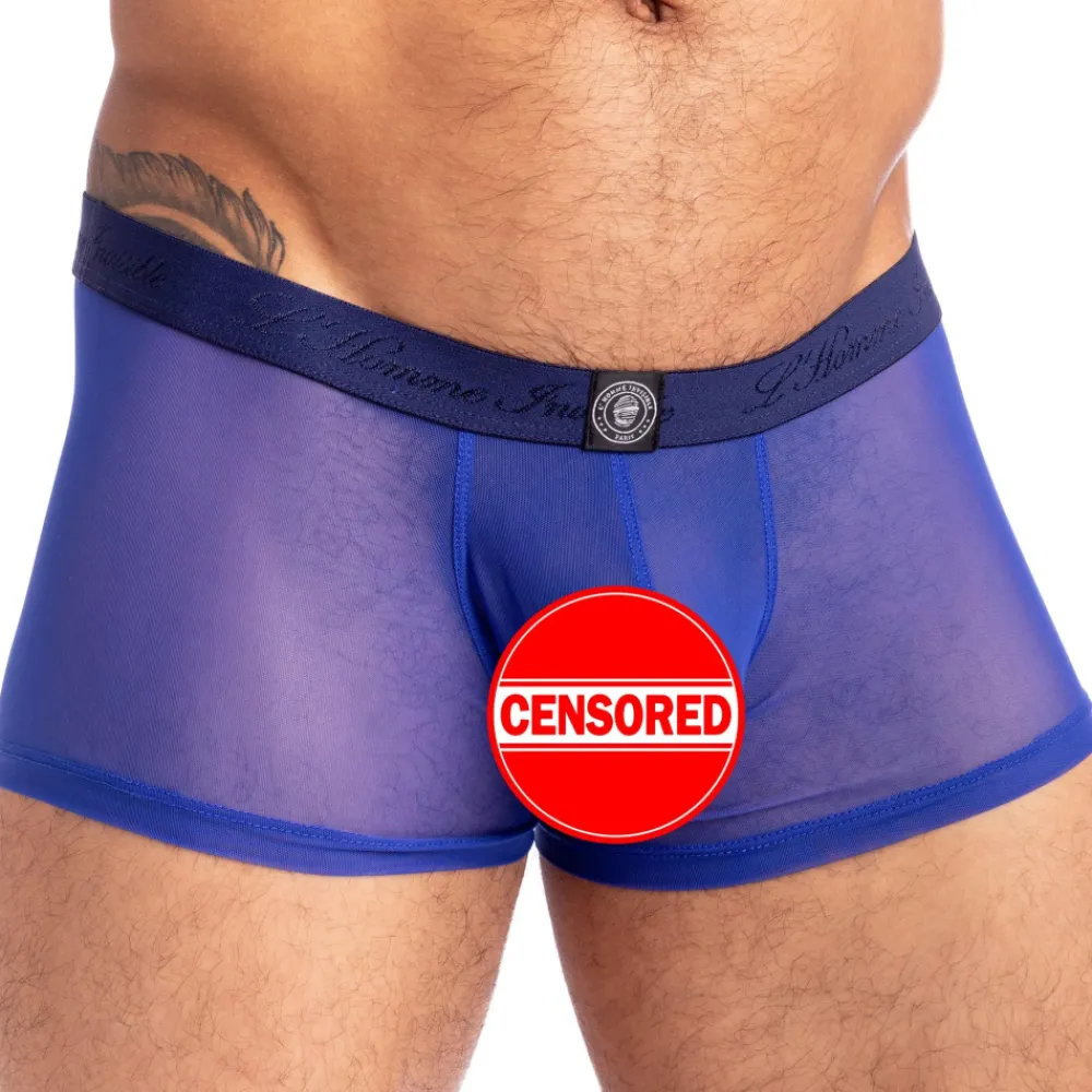 Shorty totalement transparent en tulle fin, doux et léger. Poche frontale ergonomique push up non doublée. Absence de couture à l’arrière et sur les côtés, pour un effet seconde peau. Ceinture élastique signée L’Homme Invisible.
