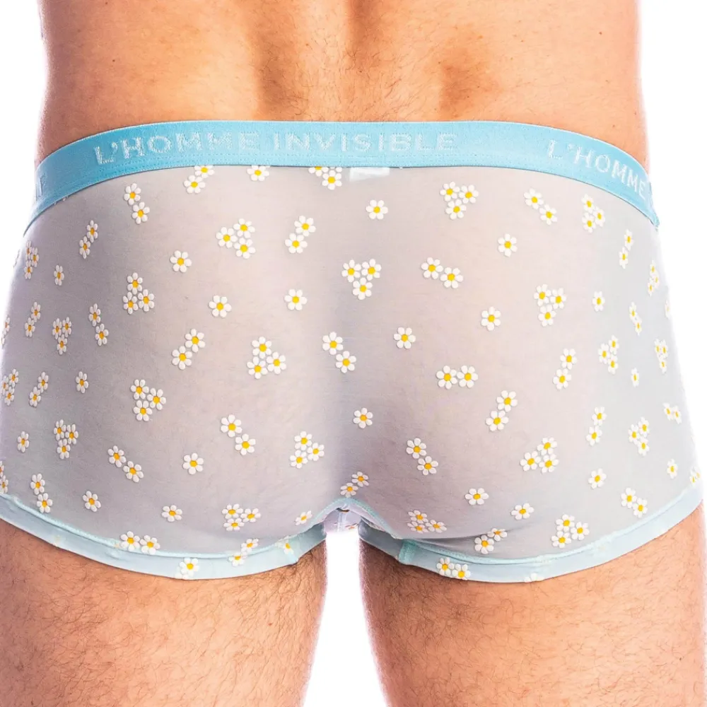 Shorty sensuel et romantique en tulle transparent de confection italienne. Paquerettes floquées. Poche frontale ergonomique push up non doublée, pour une totale transparence. Absence de couture à l’arrière et sur les côtés, pour un effet seconde peau. Ceinture élastique signée L’Homme Invisible.