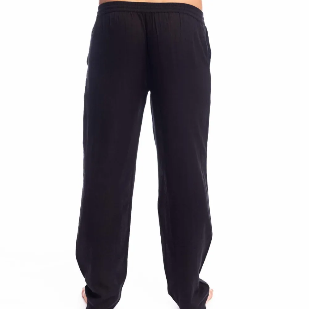 Pantalon d’intérieur chic et décontracté en crêpe de coton semi-transparent. Coupe taille basse, ample et fluide. 2 poches. Ceinture élastique avec cordon de serrage intérieur et logo L’Homme Invisible.