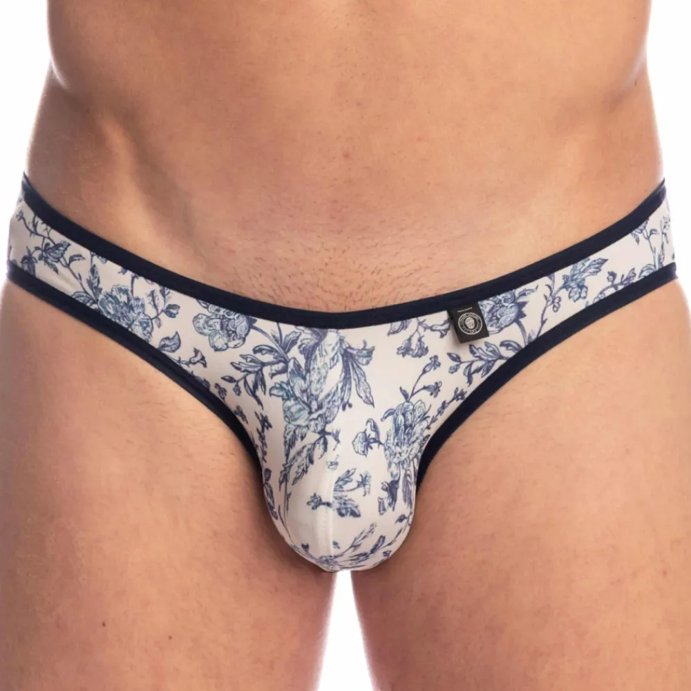 Slip élégant en microfibre extensible douce et confortable. Imprimé floral très raffiné inspiré de la toile de Jouy. Coupe minimaliste super taille basse. Poche frontale ergonomique, non doublée. Bordures de couleur contrastée. Fine ceinture élastique avec logo L’homme Invisible.