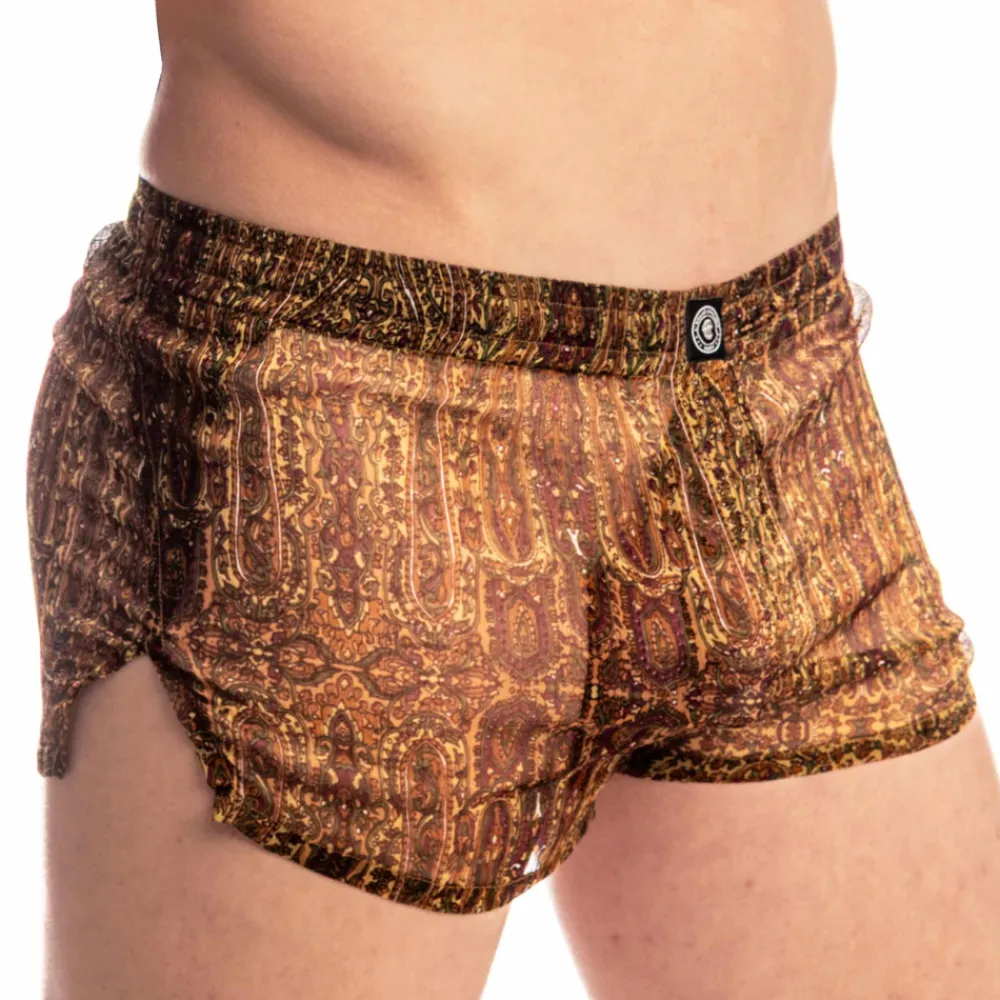 Short raffiné en viscose soyeuse, légère et totalement transparente. Motif cachemire inspiré du lac Nigeen. Fentes latérales audacieuses. Ceinture élastique avec cordon se serrage intérieur et logo L’homme Invisible.