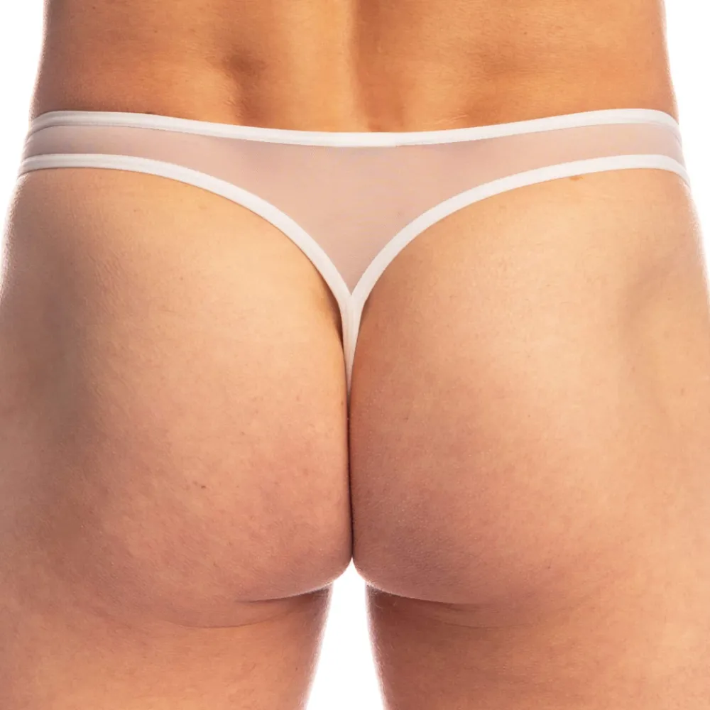 String taille basse très sensuel en tulle transparent ultra fin. Coupe avant très échancrée en V. Poche frontale ergonomique profonde. Découpe en Y sur les fesses. Etiquette L’Homme Invisible cousue sur la fine ceinture élastique.