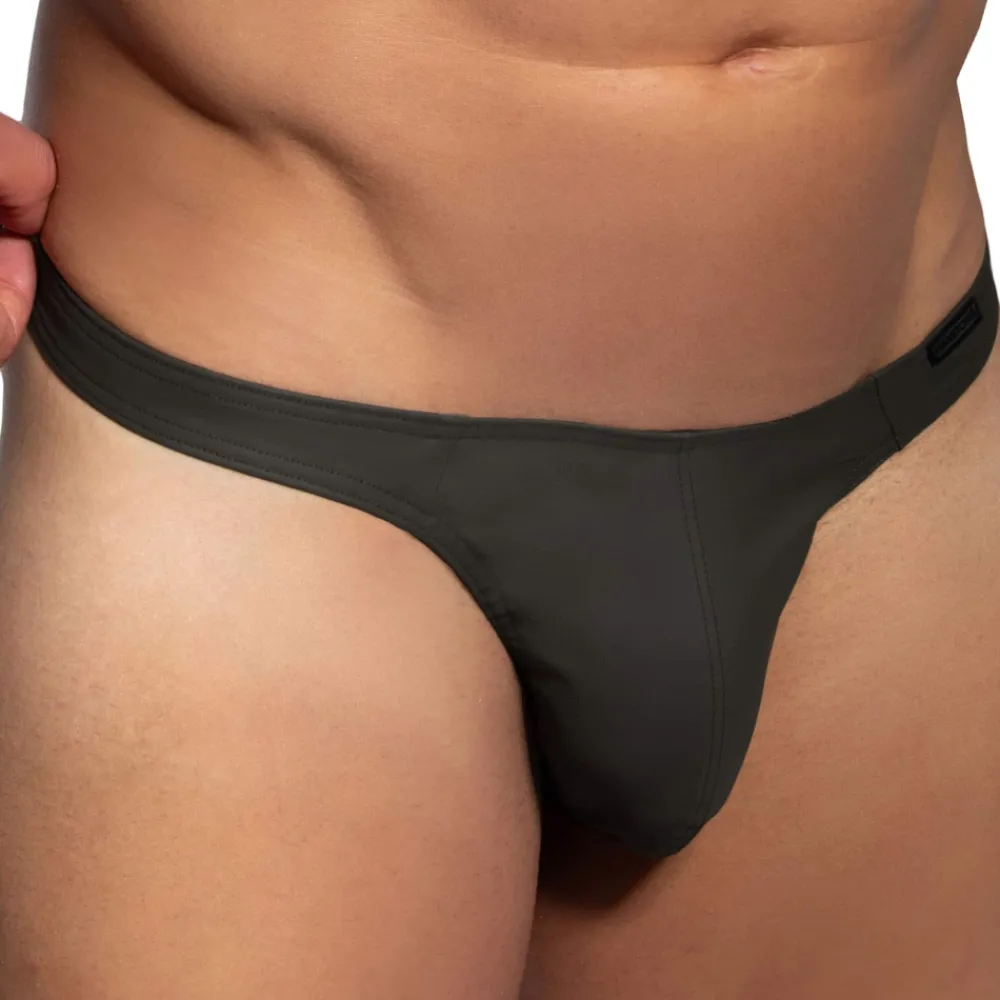 String très sexy en simili-cuir mat, ultra doux et confortable. Poche frontale préformée, non doublée. Fine ceinture élastique recouverte. Etiquette Manstore cousue sur la hanche gauche.