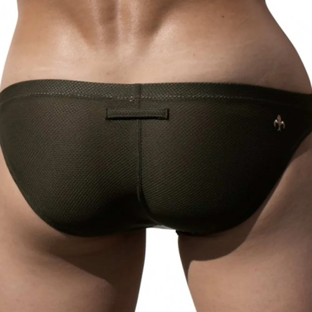 Slip super taille basse en résille fraîche, confortable et respirante. Empiècements contrastés sur la poche frontale non doublée et les côtés. Logo brodé devant et derrière.