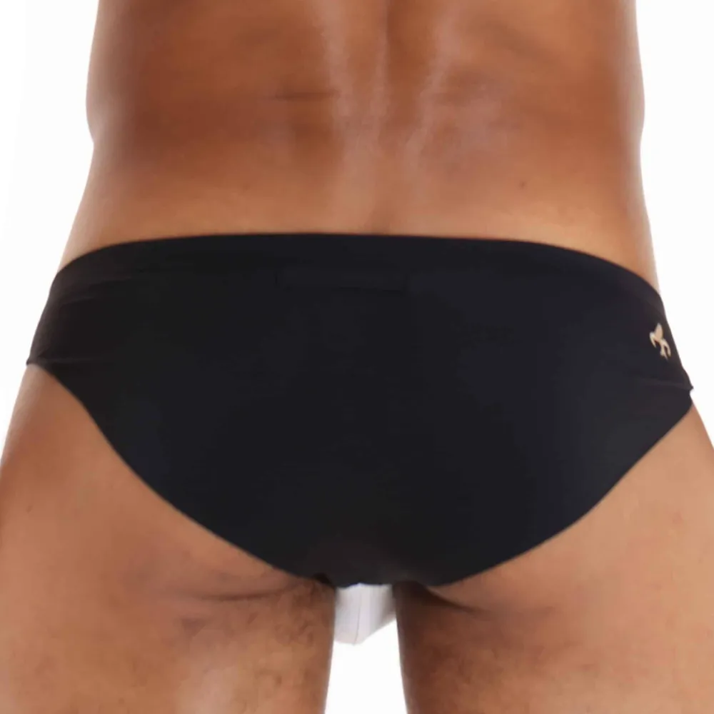 Slip audacieux en microfibre fine, douce et soyeuse pour un effet seconde peau. Coupe super taille basse et très ajustée. Poche frontale 3D non doublée. Coutures collées pour plus de confort. Logo Marcuse brodé devant et derrière.