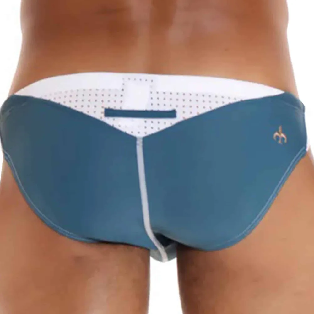Slip de bain super taille basse en microfibre italienne extensible, douce et confortable. Tissu de qualité premium résistant à l’eau de mer, au chlore et aux UV. Empiècements en mesh respirant sur les côtés et le haut des fesses. Poche frontale 3D non doublée. Ceinture élastique avec cordon de serrage intérieur. Logo Marcuse brodé devant et derrière.