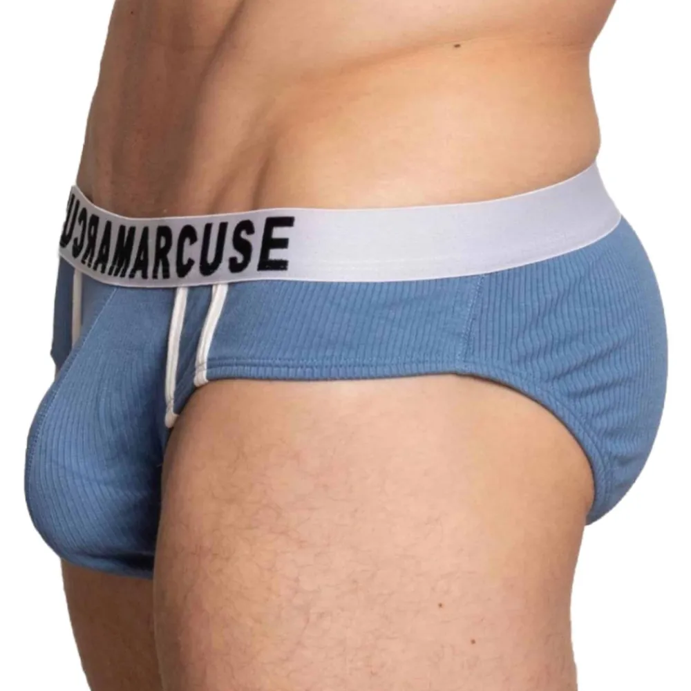 Slip confortable en tissu côtelé extensible, ultra-doux, léger et respirant. Coupe super taille basse et très ajustée. Deux bandes sport contrastées sur les côtés. Ceinture élastique signée Marcuse. Logo brodé sur la fesse droite.
