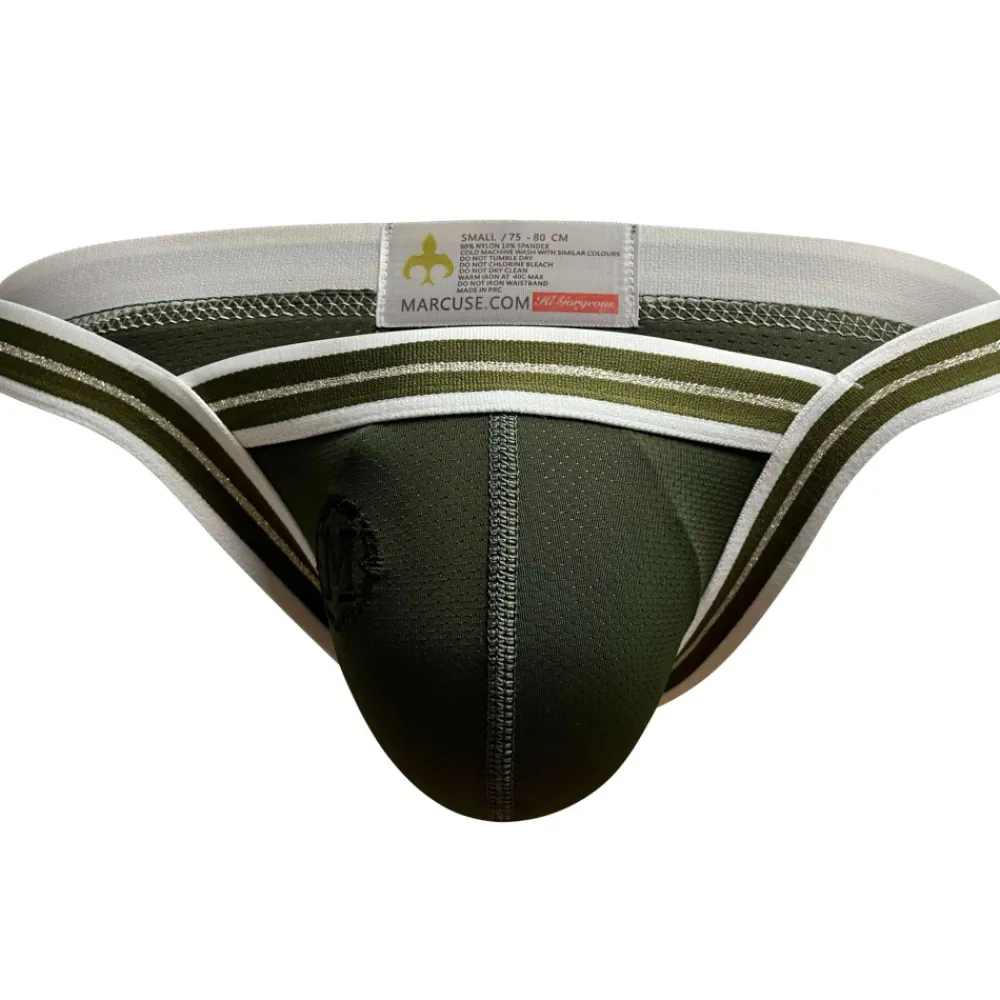 Slip tanga super taille basse en résille douce et soyeuse. Poche frontale 3D non doublée, encerclée par un strap élastique pour un bel effet push up. Logo Marcuse brodé devant et derrière.