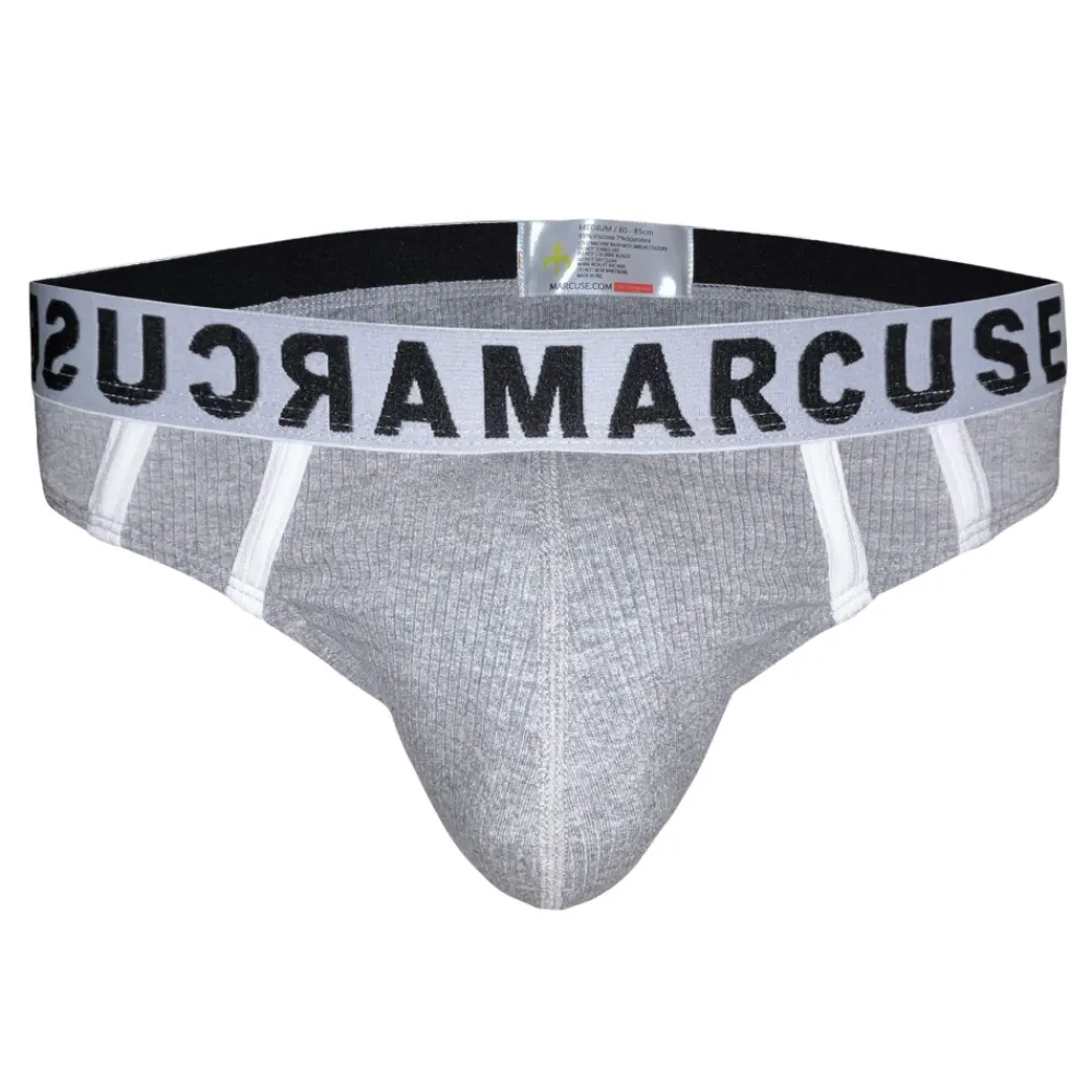 String confortable en tissu côtelé extensible, ultra-doux, léger et respirant. Coupe super taille basse et très ajustée. Deux bandes sport contrastées sur les côtés. Ceinture élastique signée Marcuse.