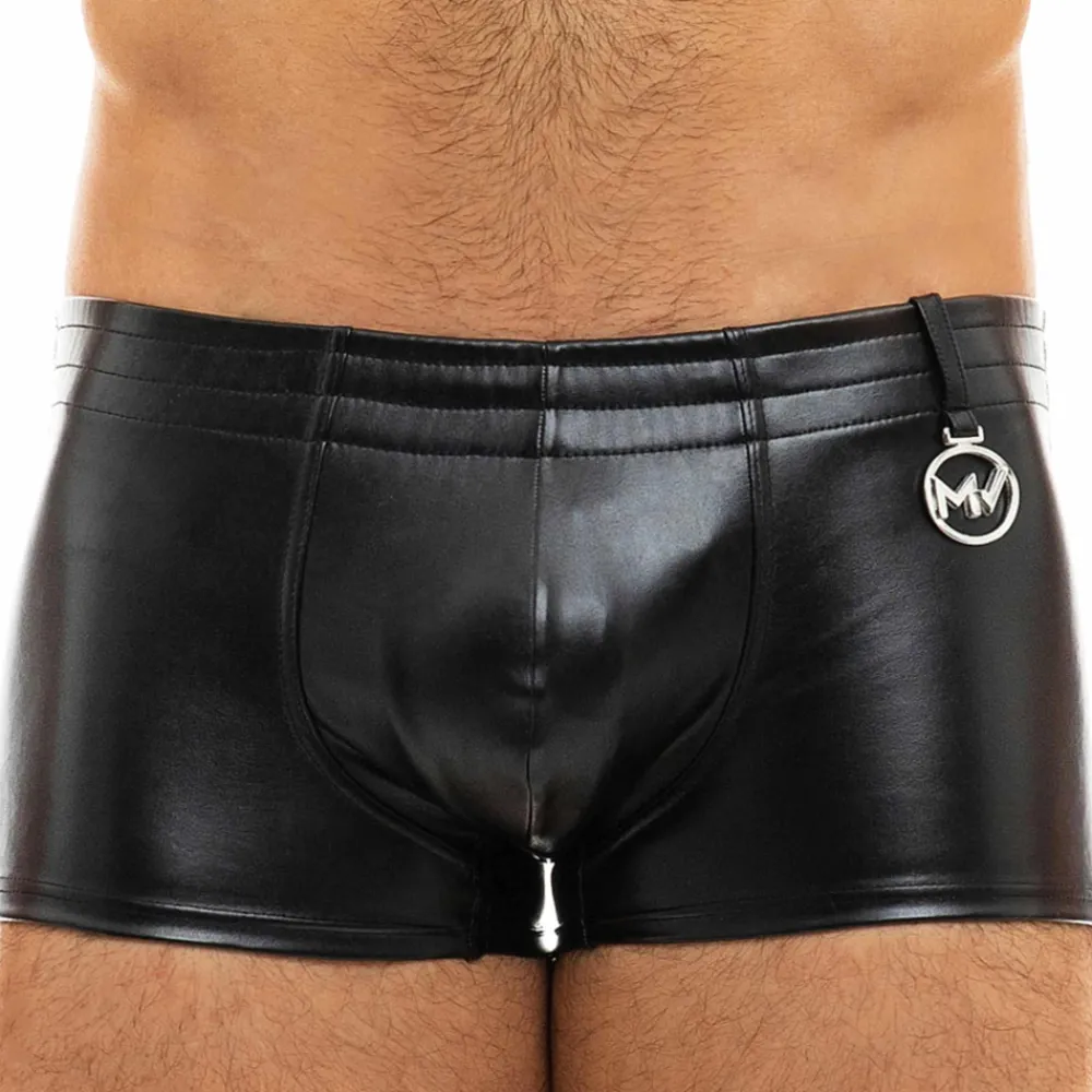 Boxer taille basse très sexy et luxueux en microfibre imitant le cuir. Poche frontale doublée. Logo métallique Modus Vivendi sur le côté. Ceinture élastique recouverte.