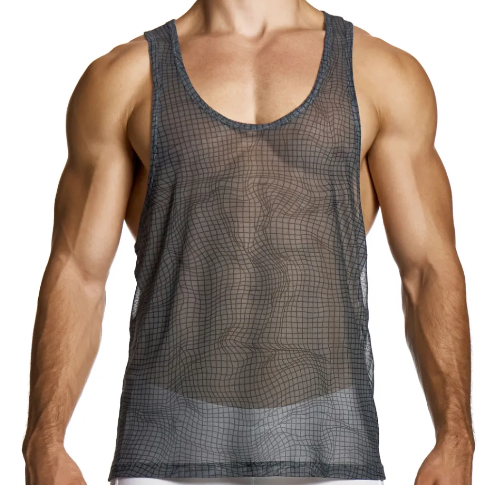 Modus Vivendi Débardeurs-Débardeur Abstract Résille Gris Anthracite