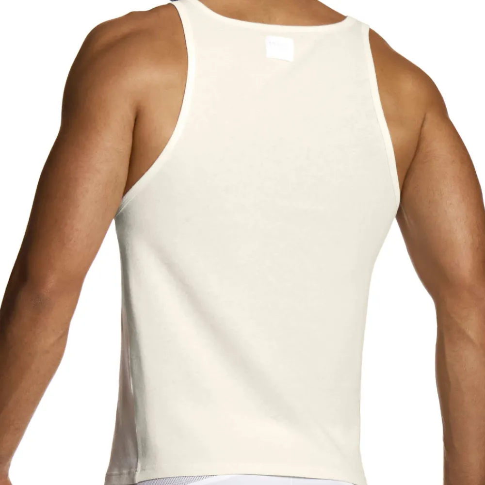 Débardeur en mélange de lin et de coton. Tissu respectueux de la peau, respirant, anti-transpirant et hypollargénique. Col carré élégant et coupe ajustée. Etiquette Modus Vivendi au dos.