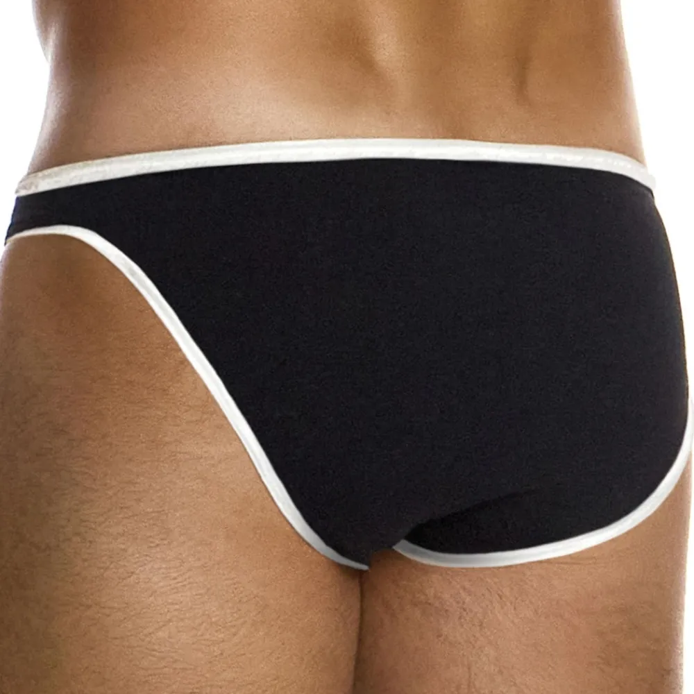 Slip luxueux, élégant et confortable en mélange très doux de soie et de viscose. Coupe taille basse. Poche frontale non doublée. Bordures satinées de couleur contrastée. Etiquette Modus Vivendi en silicone cousue sur la fine ceinture élastique.