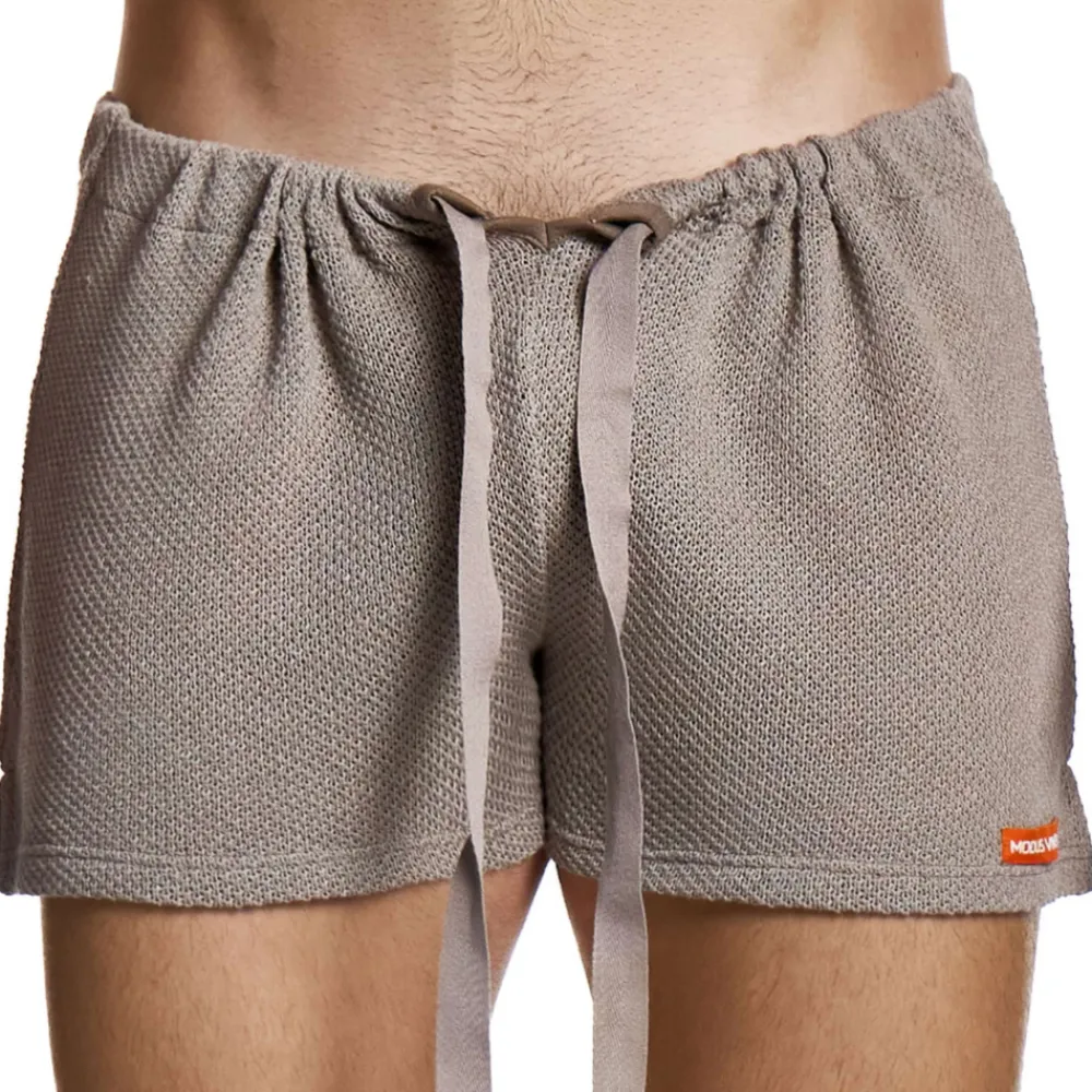 Short d’intérieur monochrome très sexy en maille tricotée fine. La matière en crochet dévoile sensuellement le corps en transparence. Coupe décontractée avec cordon de serrage. Etiquette Modus Vivendi cousue sur la cuisse gauche.