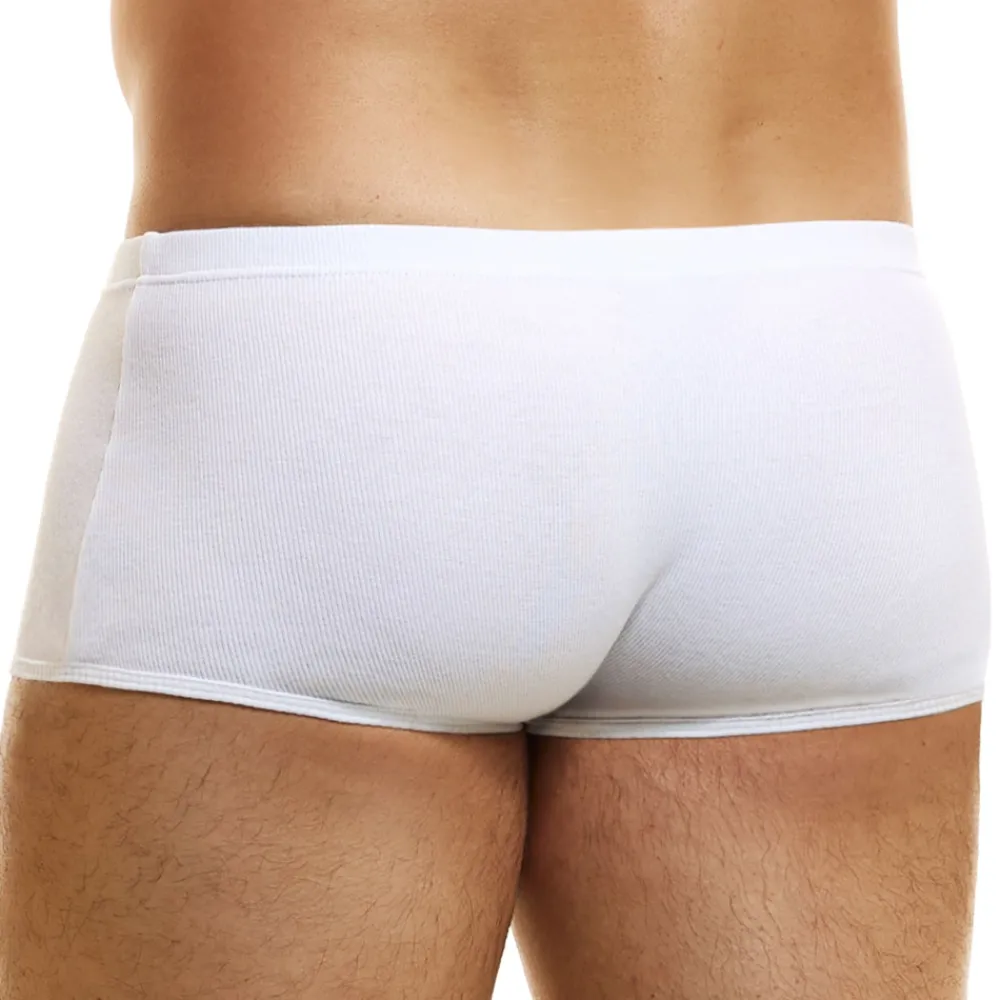 Boxer taille basse en coton côtelé, doux et confortable, de couleur intense. Tissu éco-responsable certifié GOTS. Logo MV sur la hanche gauche. Ceinture élastique fine et recouverte.