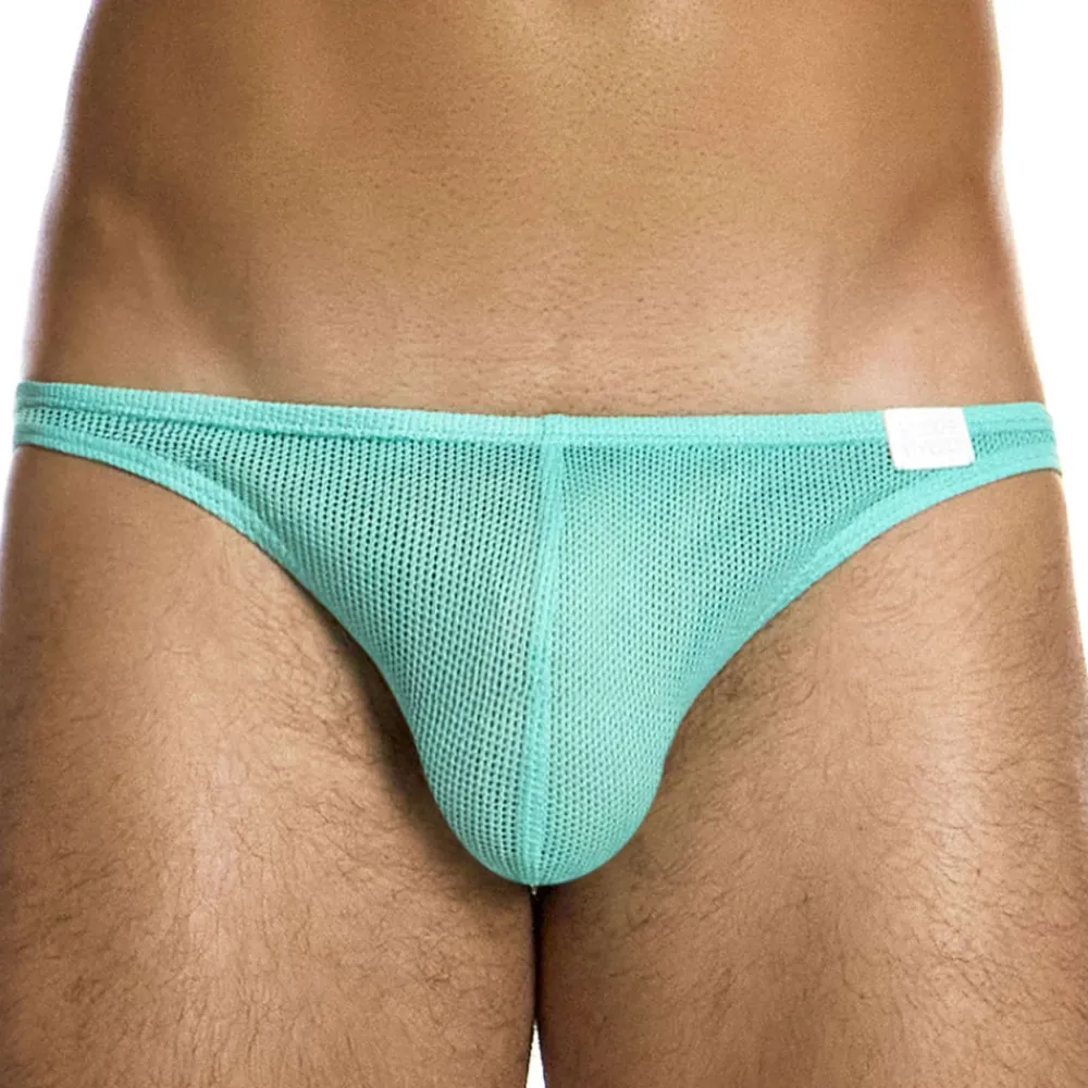 Slip ultra taille basse en micro-résille extensible, fine et légèrement transparente de couleur pop. Poche frontale non doublée. Coupe ajustée, minimaliste et très sexy. Logo Modus Vivendi en silicone sur la hanche gauche.