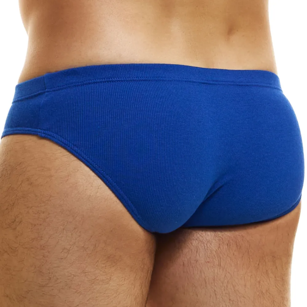 Slip taille basse en coton côtelé, doux et confortable, de couleur intense. Tissu éco-responsable certifié GOTS. Coupe classique. Logo MV sur la hanche gauche. Ceinture élastique fine et recouverte.