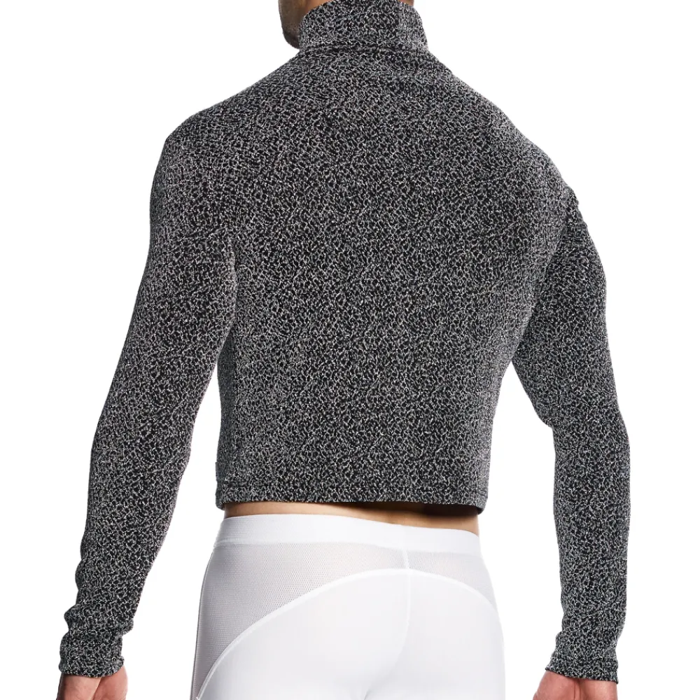 Top très glamour en microfibre tricotée avec des fils de Lurex qui lui confèrent un aspect métallique brillant. Coupe raccourcie pour dévoiler vos abdos. Manches longues et col roulé. Etiquette métallique signée Modus Vivendi.