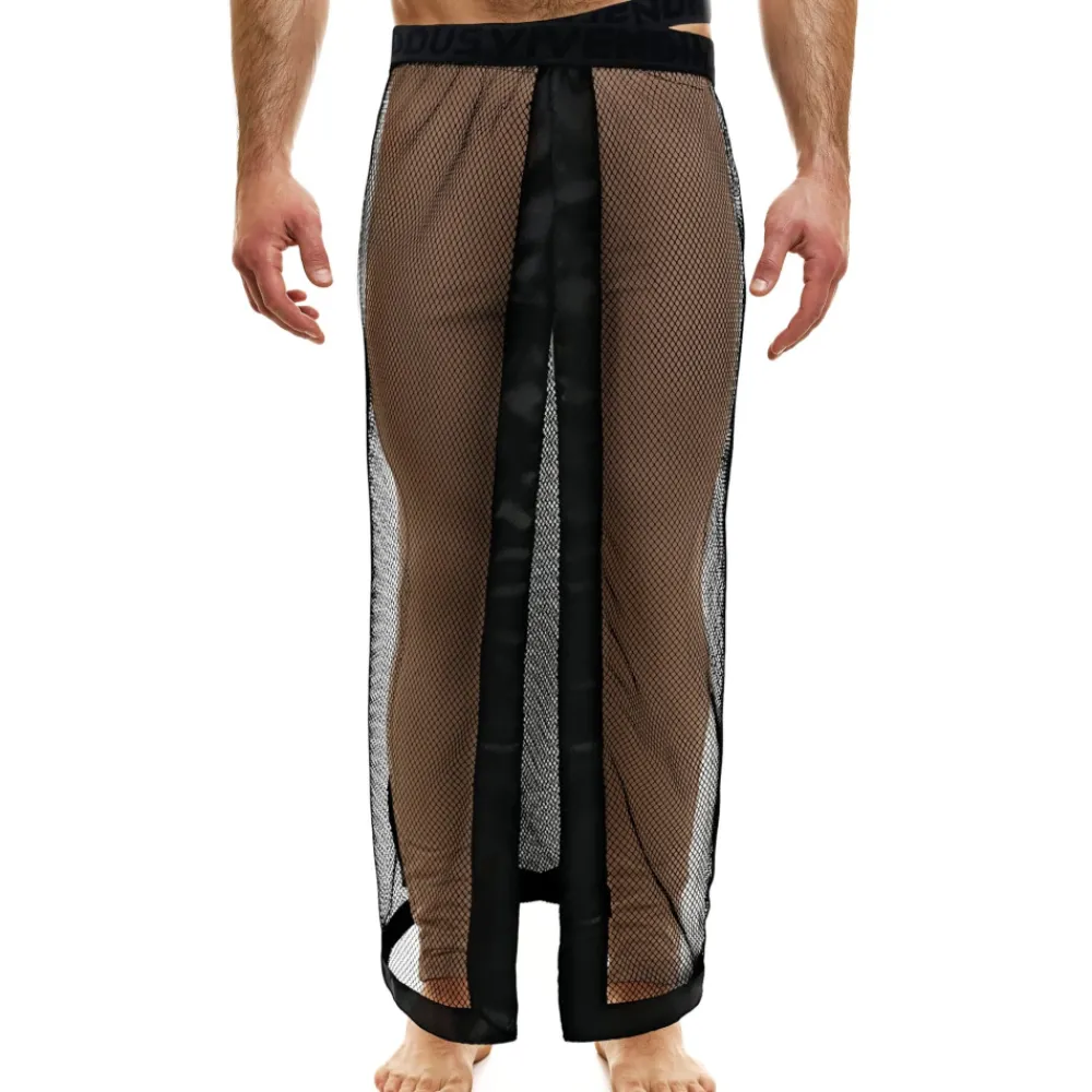 Jupe longue, audacieuse et luxueuse en résille extensible à large maille. Non doublée pour une totale transparence. Constituée de 2 panneaux distincts disposant chacun de sa ceinture élastique signée Modus Vivendi. Bordures satinées.