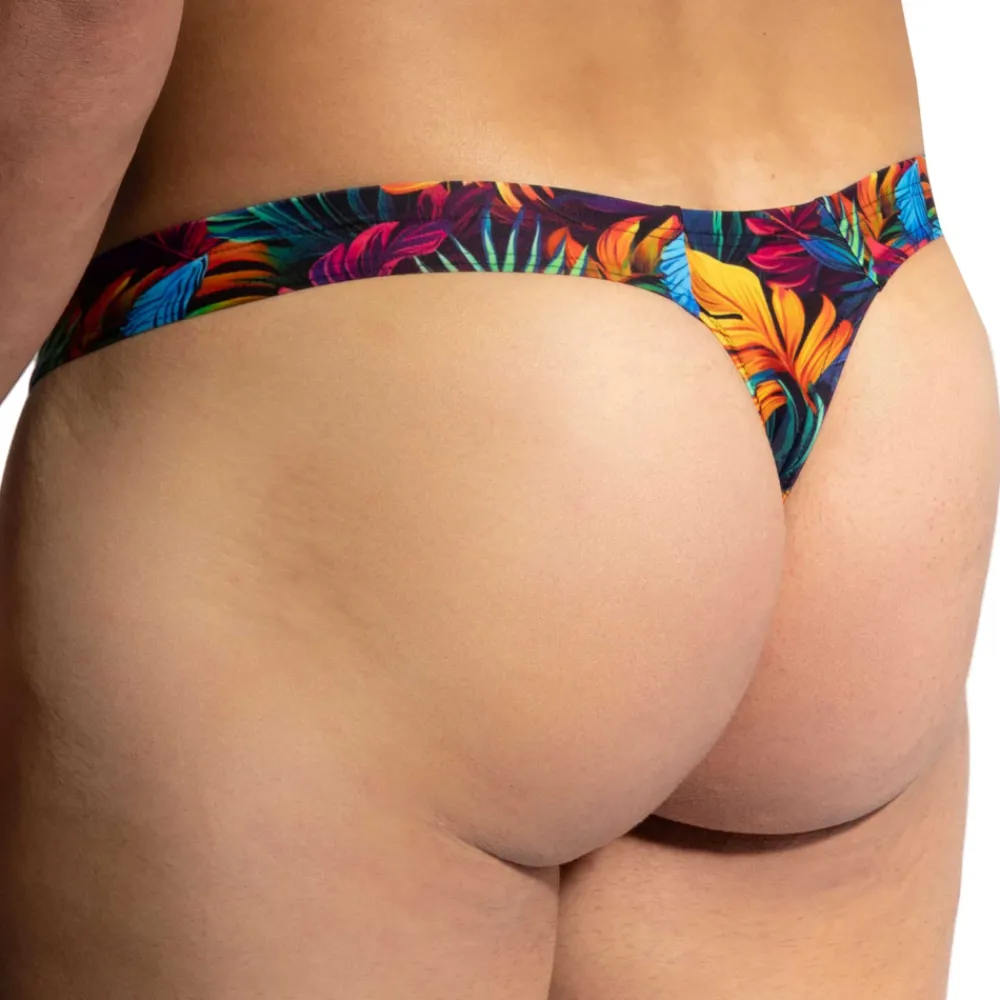 String de bain taille basse en microfibre extensible douce et confortable. Imprimée d’un motif floral coloré. Coupe simple, élégante et très confortable. Poche frontale doublée. Logo Olaf Benz cousu sur la hanche gauche.