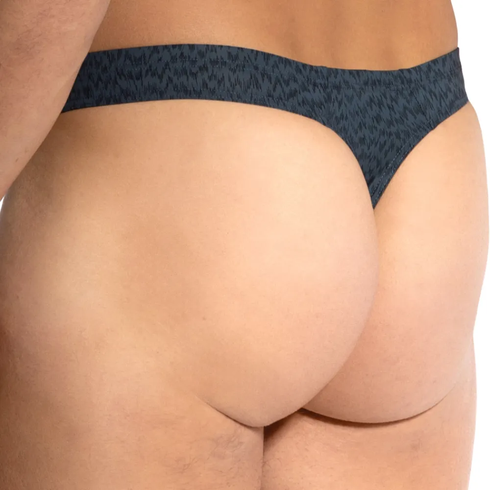 String taille basse en microfibre extensible, douce et légère. Imprimé inspiré de coups de pinceau graphiques. Coupe simple, sexy et très confortable. Poche frontale non doublée. Etiquette Olaf Benz cousue sur la fine ceinture élastique recouverte.